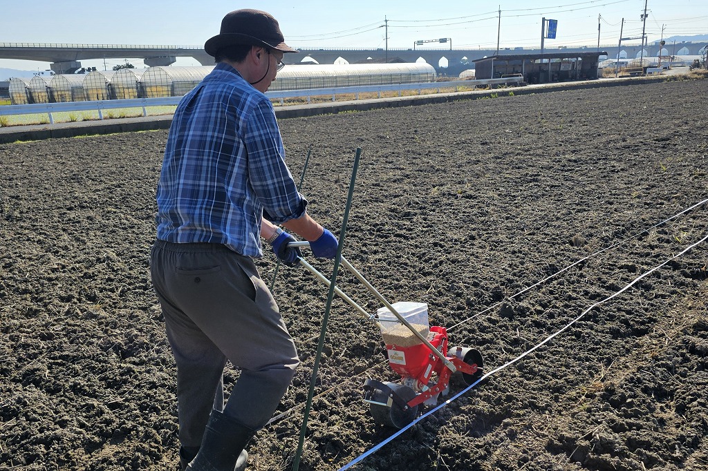 朝からいろいろバタバタと。圃場に行って、大麦の播種を見学したり。