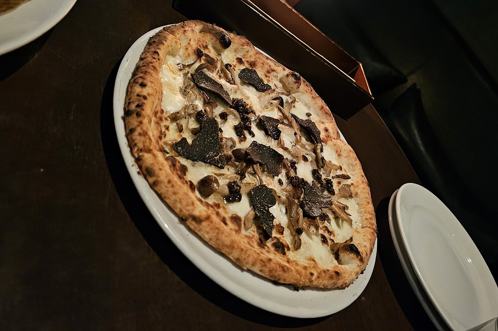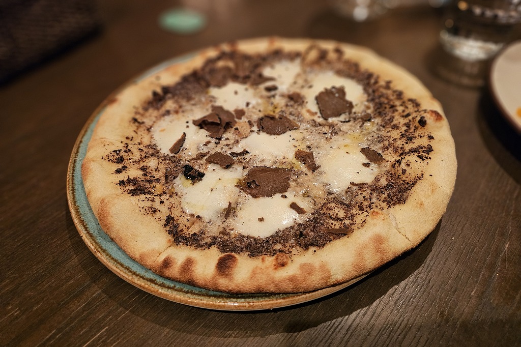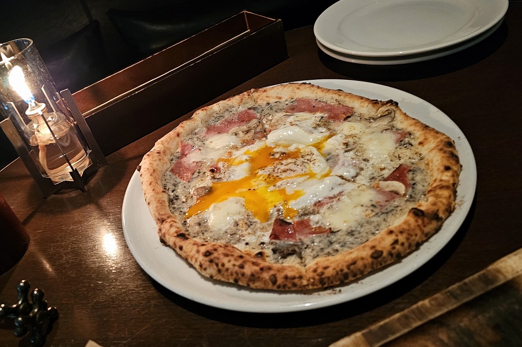 夜はピザでワイン